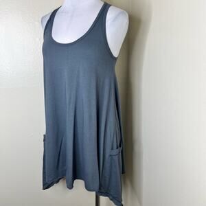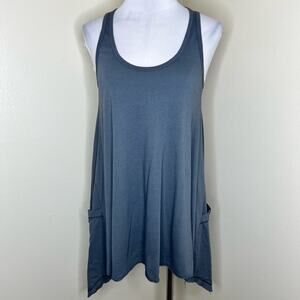 Lauren Moshi Tank Top w Pocket Medium Gray Swing Tunic Racerback Modal Cotton