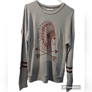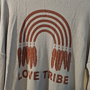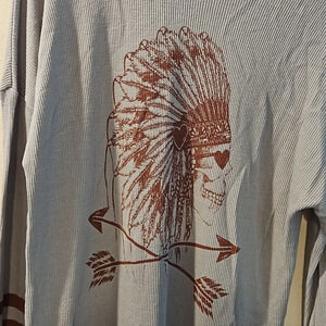 With a Native American skull on the front AND a dream catcher and Love Tribe written on the back, this thermal will be a conversation piece. Then add a couple of stripescto the sleeve. And, did I mention, just how soft this is??? LOVE THIS!