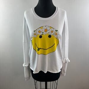 Lauren Moshi White Yellow Sweatshirt Happy Daisy Peace Crew Neck Sz Medium