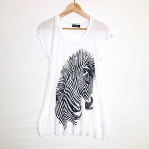 Lauren Moshi white zebra graphic print tunic T-shirt