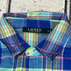 Lauren Polo Ralph Lauren Monogram Women's Plaid Button Down Preppy Bed Shirt