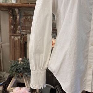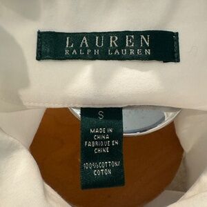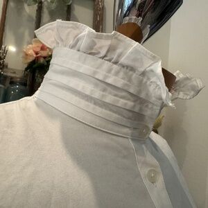 Lauren RALPH LAUREN | Edwardian VICTORIAN RUFFLE Accents @ NECKLINE and SLEEVE CUFF | PIN TUCK DETAILING on HIGH NECKLINE and SLEEVE Cuff | Button Down Front | 3 Button Closure on Sleeve Cuff | Crisp WHITE Cotton | Size Small | Great Condition | Measurements: