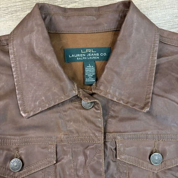 Lauren RALPH LAUREN Jeans Co. Classic Coated Denim Trucker Jacket Brown size L