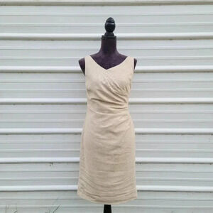 Lauren RALPH LAUREN Linen Beige Sleeveless V-NECK Dress Rutched Size 2