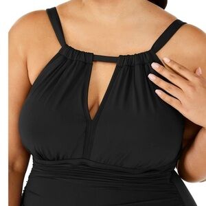 Lauren RALPH LAUREN Slimming Fit High-Neck Keyhole One-Piece Swimsuit Black 20W