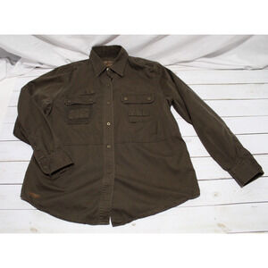 Lauren RL Safari Outfitters Women's M/L Green Cargo Snap Button Top Roll Tap LS