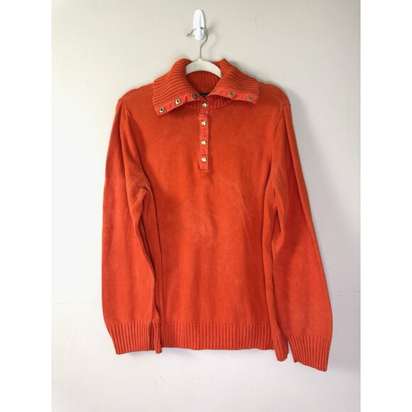 Lauren RL Womens 2X Orange Sweater Funnel Neck Button Cozy Autumn Classic Preppy