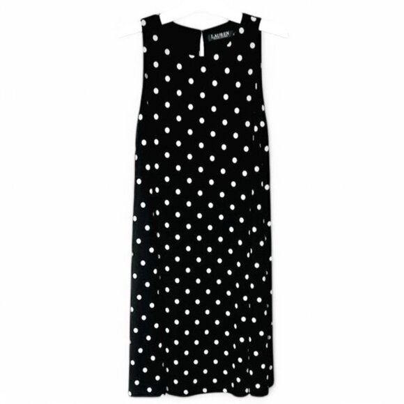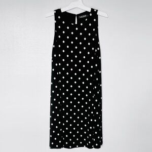 Lauren Ralf Lauren Black and White Polka Dot Sleeveless A-line Midi Dress Size 6
