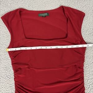 Item Detail: Lauren Ralph Lauren Womens 8 Bodycon Dress Ruched Square Neck Red formal career, Elegant
