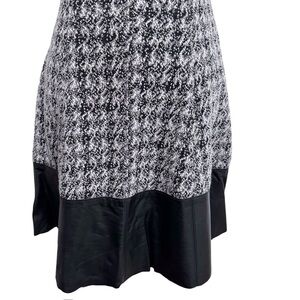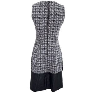 Lauren Ralph Kauren Houndstooth Tweed Fit & Flare Dress Size 0 Faux Leather Trim