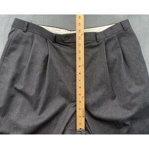 Lauren Ralph Lauren Total Comfort Dress Pants Men's 38x32 Gray Wool Pleated Cuffed Business Slacks. Good pre-owned condition with moderate wear. There are two visible stains on the fabric as highlighted in photos. No holes or missing buttons. Charcoal gray. Two stains, one on thigh, one on lower leg (see close-ups)please review all photos.