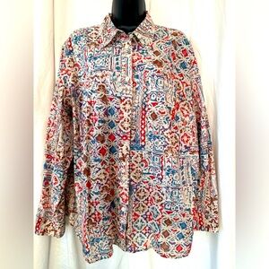 Beautiful button down long sleeve blouse by LRL (Green tag) is sized in a roomy 2x. Collared and brightly colored, this top is perfect with a pair of leggings or jeans.