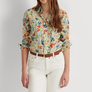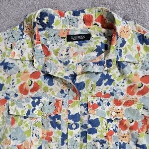 Lauren Ralph Lauren 100% Cotton Multicolor Floral Voile Button-Up Shirt Ditsy