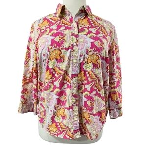 Lauren Ralph Lauren 100% Cotton Pink Orange Paisley Button-Up Shirt Maximalist