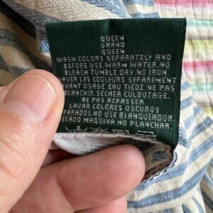 Lauren Ralph Lauren 100% Cotton Queen Striped Flat Sheet Tan Blue Preppy Nautical Old Money