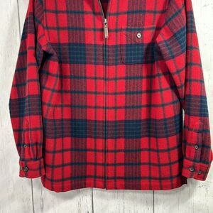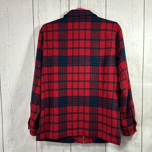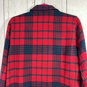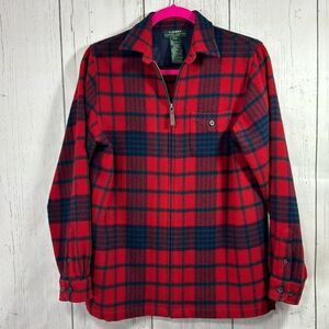 Lauren Ralph Lauren 100% Lambswool Plaid Pullover Shirt Jacket Red Navy Tartan