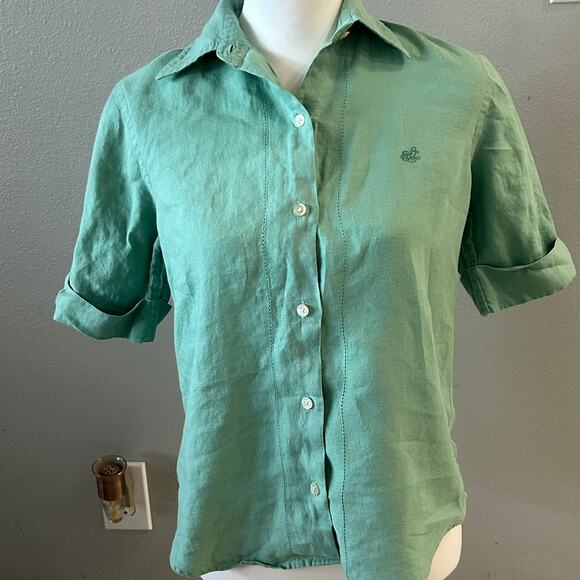 Lauren Ralph Lauren 100% Linen Button Down Shirt Green Size S