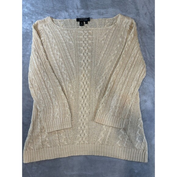 Lauren Ralph Lauren 100% Linen Cable Knit Sweater Cream Medium