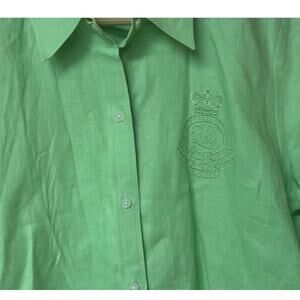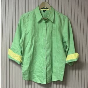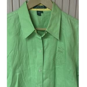 Lauren Ralph Lauren 100% Linen Logo Button Down Shirt Lime Green Women’s Size L