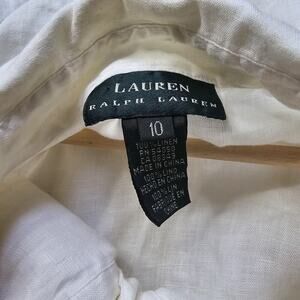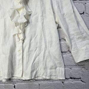 Lauren Ralph Lauren 100% Linen OffWhite Pirate Middle Ruffle Button Up 3/4 Sz 10