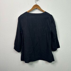 Lauren Ralph Lauren 100% Linen Tie Front Black 3/4 Roll Tab Sleeve Top Size L