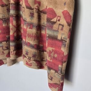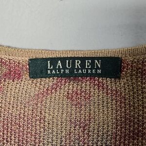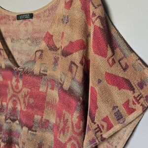 Lauren Ralph Lauren 100% Linen V-Neck Southwestern Aztec Boho Textured Knit Top
