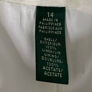 Lauren Ralph Lauren 100% Linen White Blazer New With Tags Size 14