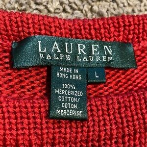 Lauren Ralph Lauren 100% Mercerized Cotton Knitted Red Pullover Sweater Size Lrg