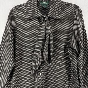 Lauren Ralph Lauren 100% Silk Blouse Black White Geometric Print Belted M