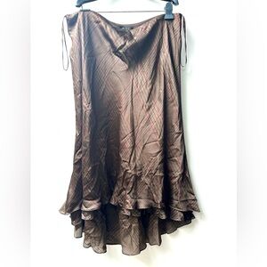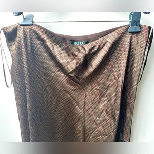 Lauren Ralph Lauren 100% Silk Brown and Burgundy Plaid Midi Layered Skirt, 16 W