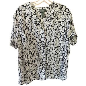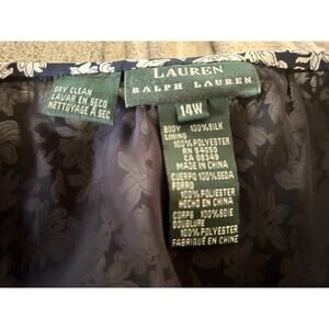 Lauren Ralph Lauren 100% Silk Floral Blouse & Skirt Set – Navy / White – Plus Size (1X Top, 14W Skirt)