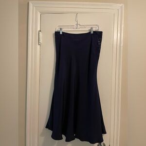 Lauren Ralph Lauren 100% Silk Navy Blue Midi Skirt Size 10