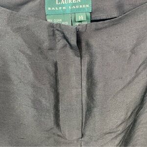 Lauren Ralph Lauren 100% Silk Pants sz 14 Green Label Luxury Preppy Black Wide