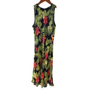 Lauren Ralph Lauren 100% Silk Tropical Floral Midi Dress 6P Petite Y2K Hawaiian