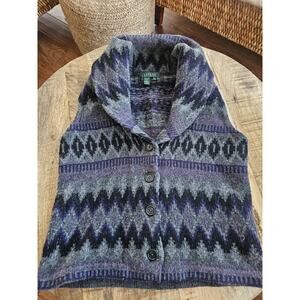 Lauren Ralph Lauren 100% Wool Aztec Vest Womens Size M Preppy Southwestern
