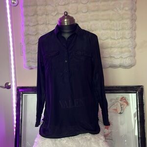 Lauren Ralph Lauren 100% silk collared black blouse shirt very thin and light