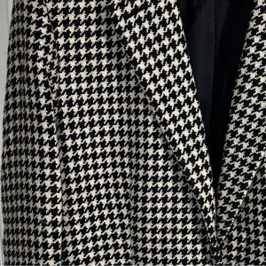 100% wool Lauren Ralph Lauren blazer, houndstooth pattern in black and white. High quality garment and construction. Size tag removed; please check measurements for sizing -- my research says this is a size 14 or XL. Front pockets, fully lined.