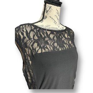 Lauren Ralph Lauren 14 Black Tan Lace Sequin Midi Dress Cocktail Party Formal