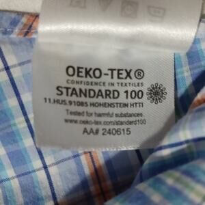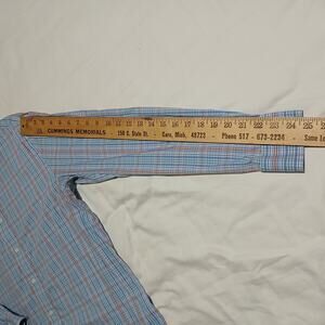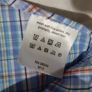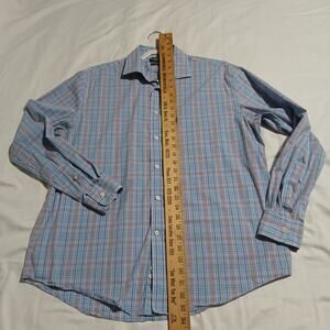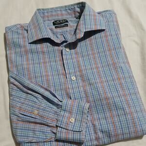 This Lauren Ralph Lauren blue/green/orange/aqua/navy plaid button-up shirt is in fabulous condition and ready to wear!