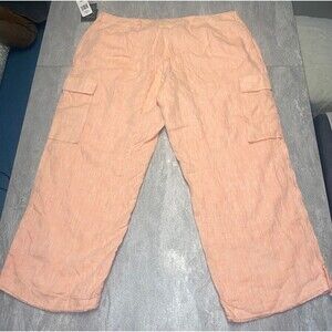 Lauren Ralph Lauren 18W Tangerine 100% Linen Cargo Pockets Beachy Coastal Comfy
