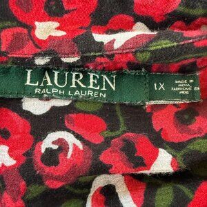 Lauren Ralph Lauren 1X Blouse Floral Print Button Front Shirt Cotton Office