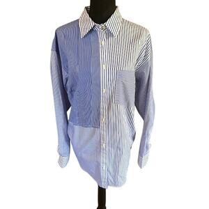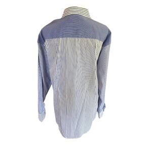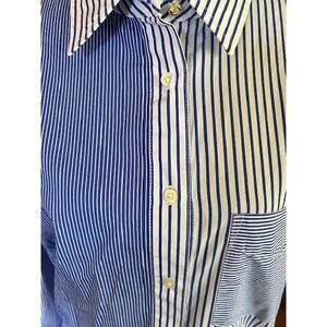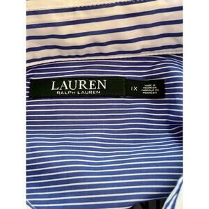 Lauren Ralph Lauren 1X, plus size button down, mixed stripe shirt, blue white striped blouse, cotton poplin, office shirt, classic preppy top