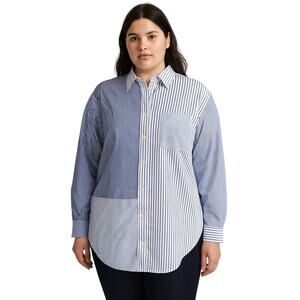 Lauren Ralph Lauren 1X Mixed-Stripe Button-Front Shirt, Blue/White, 100% Cotton