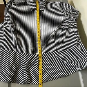 Lauren Ralph Lauren 22W Black White Striped Peplum Button Blouse Work Office