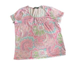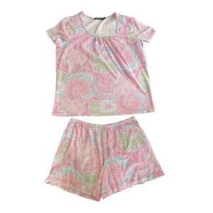 Lauren Ralph Lauren 2PC Pajama Set Womens Pink Floral Paisley Top Shorts Sz M
