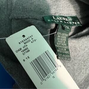 Lauren Ralph Lauren 2X Gray Turtle Neck Small Embroidered Logo Long Sleeve NEW