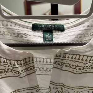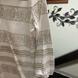 Lauren Ralph Lauren 3/4 Sleeves White and Gold Patterned V-Neck Top Small #312