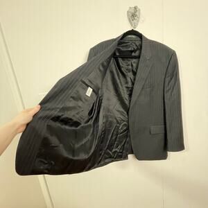 Lauren Ralph Lauren 44R green tag blazer 100% wool black gray stripe classic