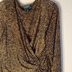 Lauren Ralph Lauren 8 animal stretchy twisted faux wrap long sleeve dress midi