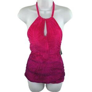 Lauren Ralph Lauren $94 Pink Ombre Palm High Neck Halter Tankini Top Size 10